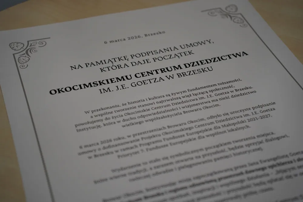 Podczas spotkania w Browarze Okocim podpisano umowę na dofinansowanie budowy Okocimskiego Centrum Dziedzictwa im. Jana Ewangelisty Goetza. Dokument sygnowali Marszałek Województwa Małopolskiego Łukasz Smółka, członek zarządu województwa Marta Malec-Lech oraz przedstawiciele spółki Carlsberg Supply Company Polska S.A. – prezes Michał Jankowski i wiceprezes Marek Kawczyński.